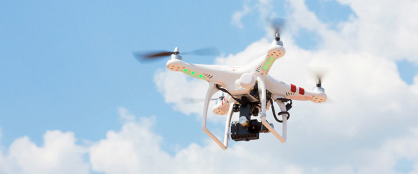 The Quadcopter Commonly referred to as drones or UAV, (Unmanned Aerial Vehicle), the Quadcopter is flown by a pilot on the ground and can go where a full size chartered helicopter cannot. My aerial camera drone is based around the DJI Phantom Quadcopter with a GoPro HERO3 camera mounted on a Gyro-stabilized gimbal. It has four rotors and can fly as low as a few inches off the ground to heights of around 400 feet. The maximum operating range is approximately 350 meters; more than three football fields. If the copter loses connection with the remote, it automatically flies itself back to where it took off and lands itself. Maximum speed is 10 meters per second or roughly 22 miles per hour. |